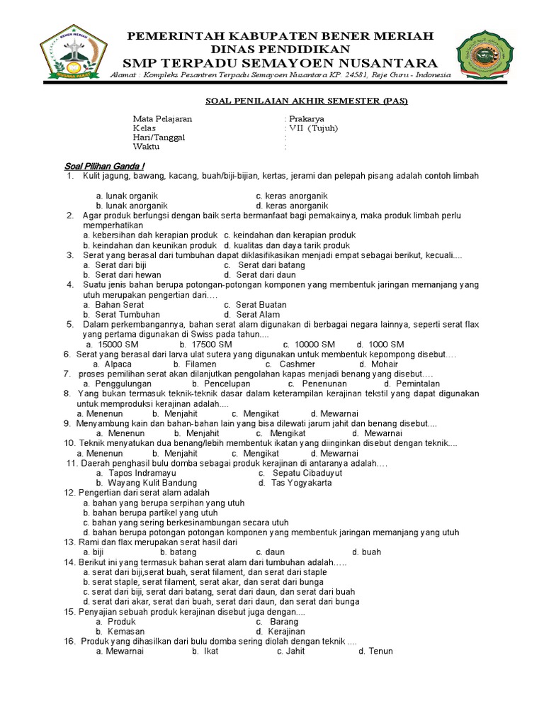 Mari kita uji pemahaman Anda dengan beberapa contoh soal yang sering muncul dalam materi kerajinan limbah lunak kelas 7.