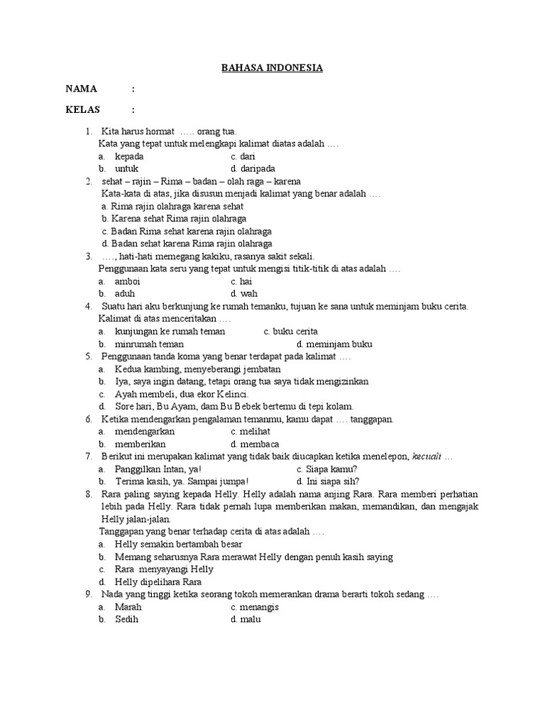 2. Jenis-jenis Soal UTS Harga Diri untuk Kelas 3